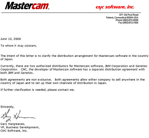 Mastercamの開発元であるCNCは、これら2社とそれぞれ個別に頒布契約を結んでおります。