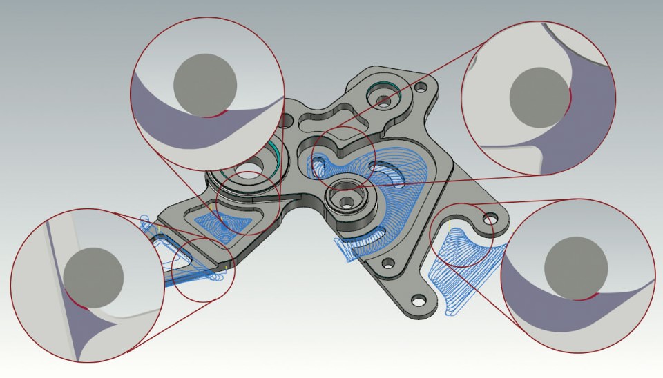 さらに、マシンシミュレーション、ベリファイ、マルチスレッド、ポストプロセッサなどの機能とも連携し、時間短縮や工具寿命、コストダウン、干渉チェック、仕上げ向上といった効率化を実現します。