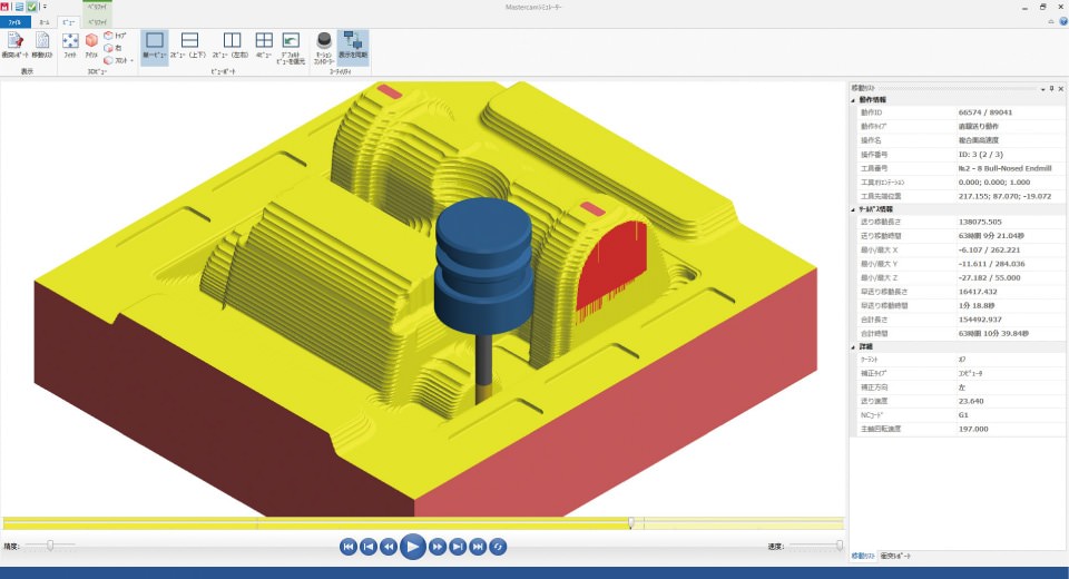 作成したツールパスから3D加工シミュレーションを行い、加工動作や切削された形状を視覚的に確認できます。