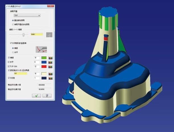 モデルの最小Rやドラフト角度などを検出し、指定した色で表示します。