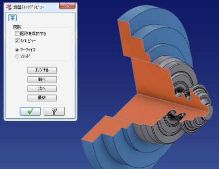 ツールパス シミュレーションを行わなくても、旋削加工後の形状を3Dモデルで確認できます。