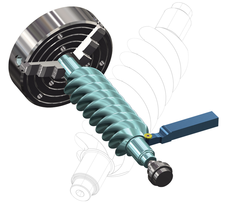 Dynamic Motionの計算ルーチンを旋削粗取りツールパスに応用し、難削材の旋削加工を容易にします。