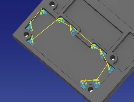 異なる平面のワイヤーフレームから2軸半のツールパスを作成します。