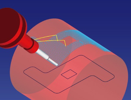 展開した形状の加工パスを、指定した軸を中心に巻きつけたロータリーパスへと変換します。