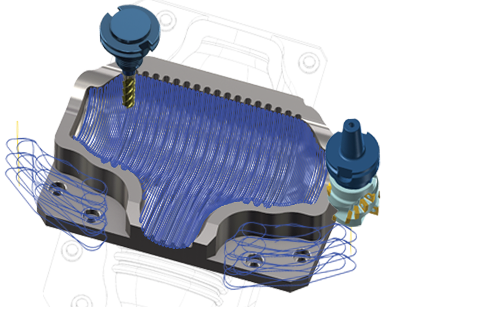 ソリッド形状を自動認識し、各領域にパスを自動生成することによって加工プログラムの作成時間を短縮します。