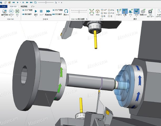 持ち換えや同期といった工作機械の動作を視覚的に表示し、干渉の確認が行えます。