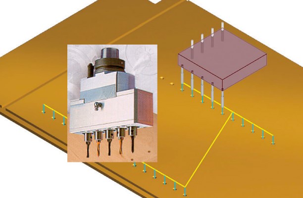 複数ドリルをブロックヘッドに配置し、指定位置でのドリル加工を行います。