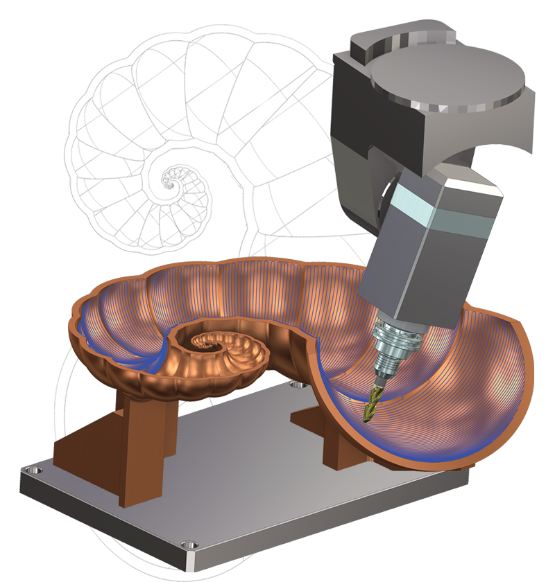 効率性の高いミーリング ツールパスを容易にプログラミングすることができるCAMソリューションです。Millモジュールで利用できる機能に加え、より複雑な自由曲面に対応できる同時3軸ツールパスの作成機能が豊富に揃っていますので、幅広い加工内容に柔軟に対応できます。また、Multiaxisオプションを追加することで同時5軸加工にも対応でき、加工現場のニーズに柔軟に対応します。