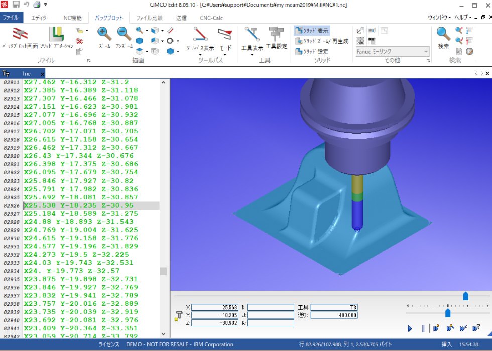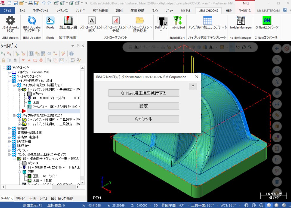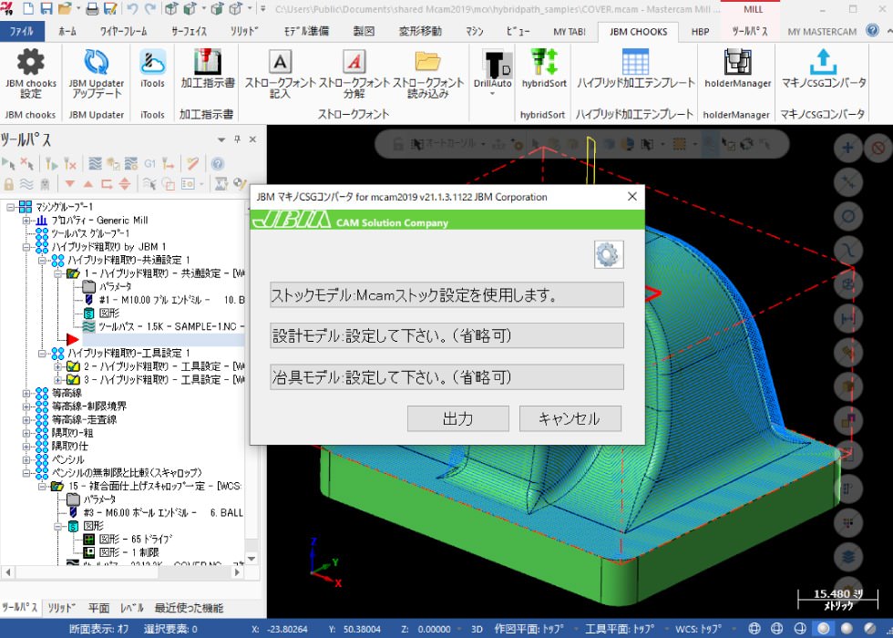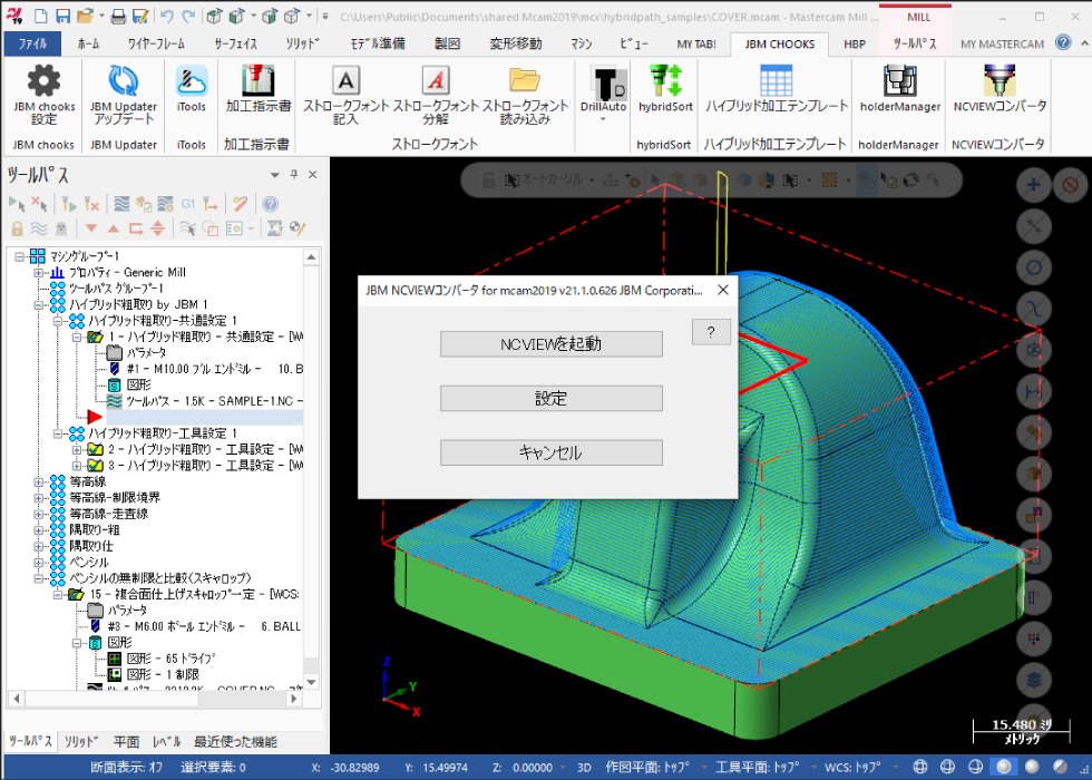 Mastercamのストック・工具を、NCVIEWのストック・工具に変換し、すぐさまNCVIEWを起動して、シミュレーションする。