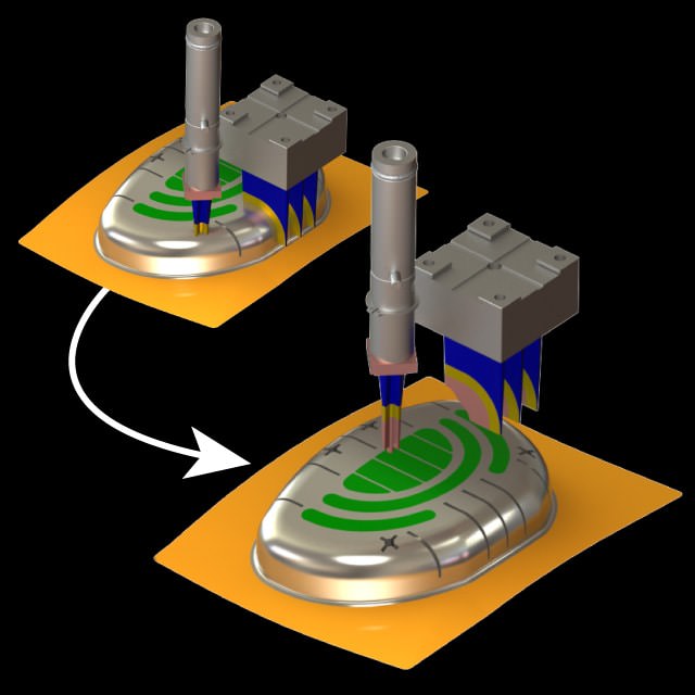 - パーツの外周などを利用して5軸輪郭加工用の切削パターンを自動作成。