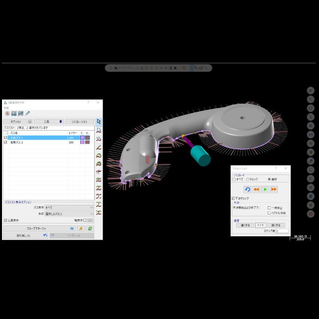 - ツールパス-面沿い加工などで加工方向を変更する場合などに便利です。